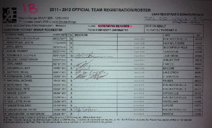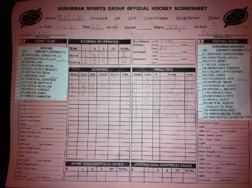 the ice). This is the date when the Screaming Beaver hockey